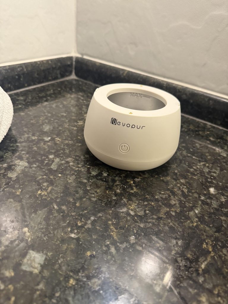 Alors j’ai fait l’erreur au début de rester appuyée trop longtemps sur le bouton, du coup il s’éteignait. En fait faut juste un petit tap rapide. Maintenant je l’utilise tous les soirs avec un comprimé, mes aligneurs sont comme neufs.