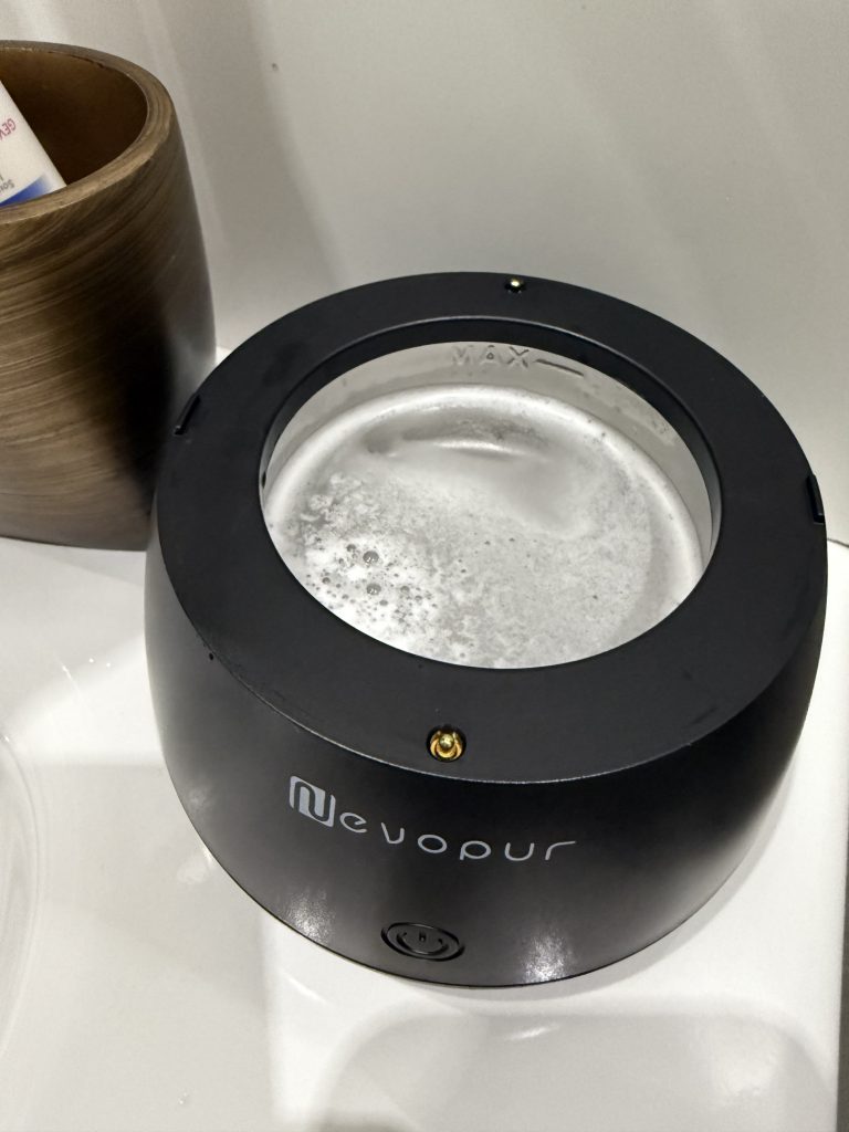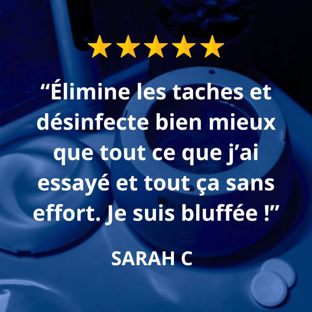 J’ai testé plusieurs produits avant et franchement celui-ci est le plus simple. On met de l’eau, un comprimé, on appuie et on attend. Y’a même une petite lumière bleue sympa. Rien à redire pour le moment.