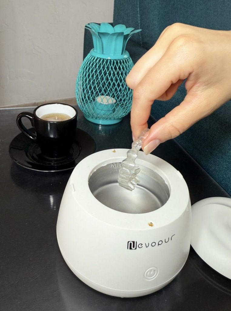 Ma fille utilise des gouttières Invisalign, et je cherchais un moyen plus efficace de les nettoyer. Ce petit appareil est parfait. Elle peut le faire elle-même, sans frotter, et c’est bien plus propre qu’avant. Merci !