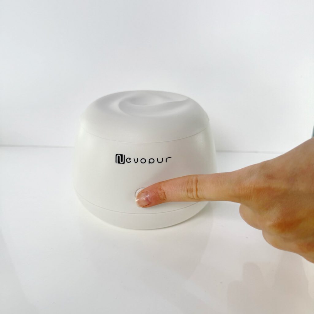 Alors j’ai fait l’erreur au début de rester appuyée trop longtemps sur le bouton, du coup il s’éteignait. En fait faut juste un petit tap rapide. Maintenant je l’utilise tous les soirs avec un comprimé, mes aligneurs sont comme neufs.